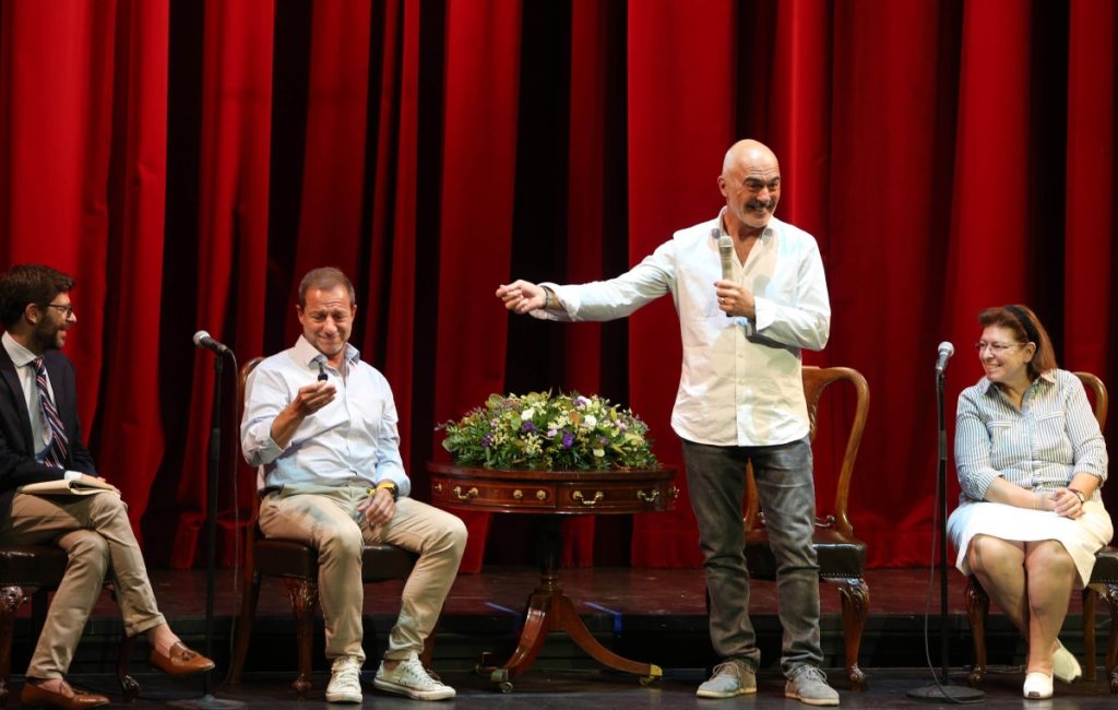 Ο Νικόλας Γιατρομανωλάκης, ο Δημήτρης Λιγνάδης και ο Στάθης Λιβαθινός και η Λίνα Μενδώνη