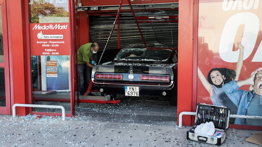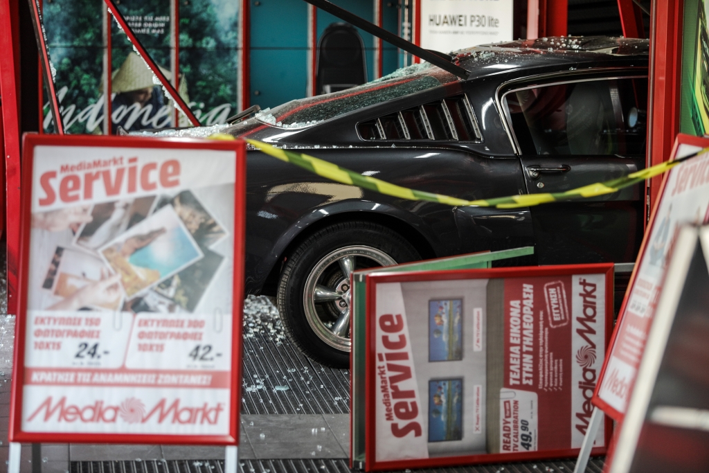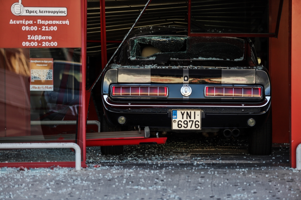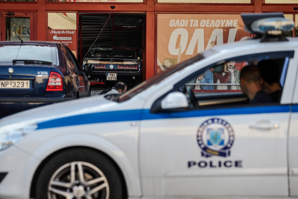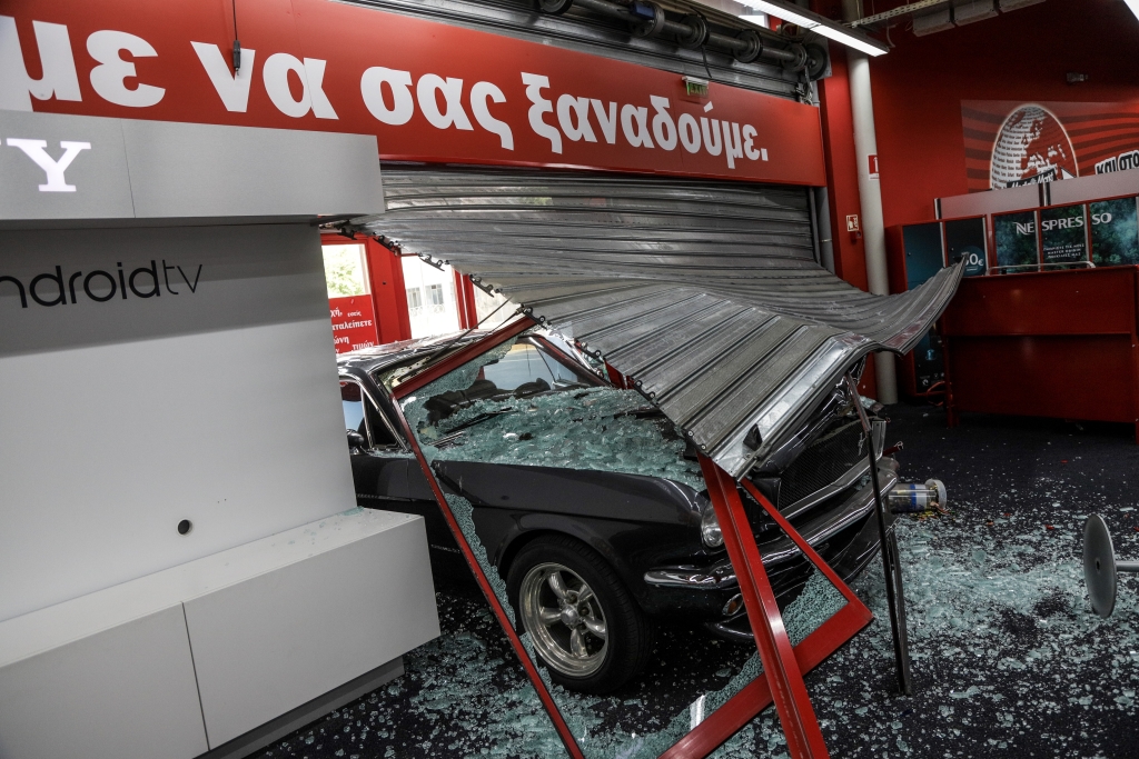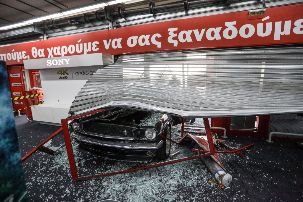 Σύμφωνα με τα ρεπορτάζ, πέντε άτομα εισέβαλαν με αυτοκίνητο -πιθανότατα κλεμμένο- σε κατάστημα ηλεκτρονικών ειδών στη συμβολή των οδών Πέτρου Ράλλη και Κηφισού.