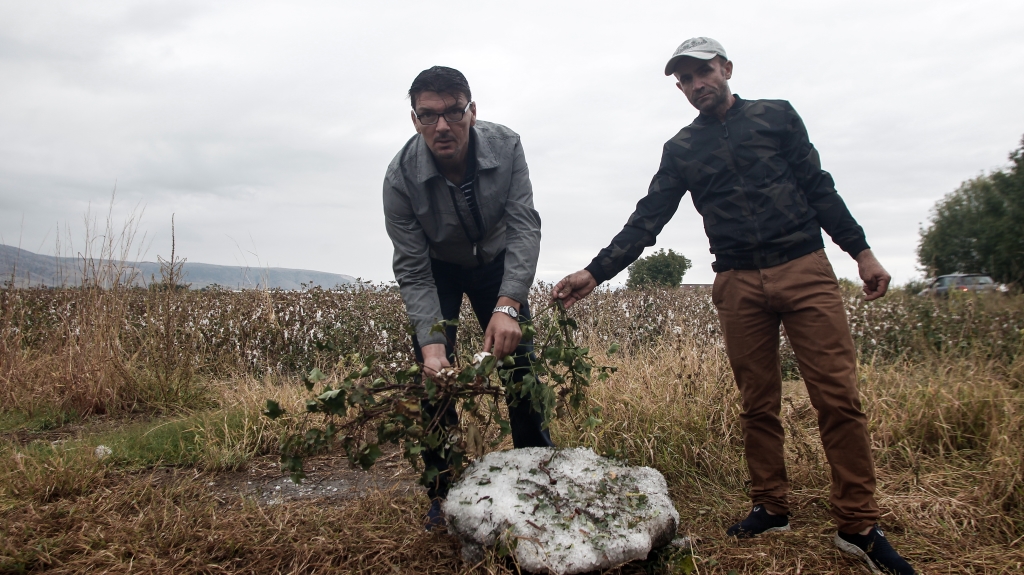 Εικόνες καταστροφής είδαν το φως της δημοσιότητας προκαλώντας θλίψη, ενώ οι κάτοικοι της περιοχής κάνουν λόγο για πρωτόγνωρες καταστάσεις, αφού το χαλάζι είχε σκεπάσει τους δρόμους και τις καλλιέργειες.