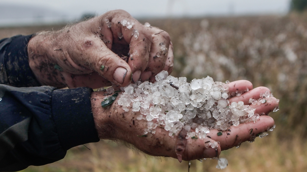 Στο χωριό Φανερωμένη των Τρικάλων η σφοδρή χαλαζόπτωση το βράδυ της Πέμπτης κατέστρεψε καλλιέργειες, προκαλώντας τεράστιες οικονομικές καταστροφές.