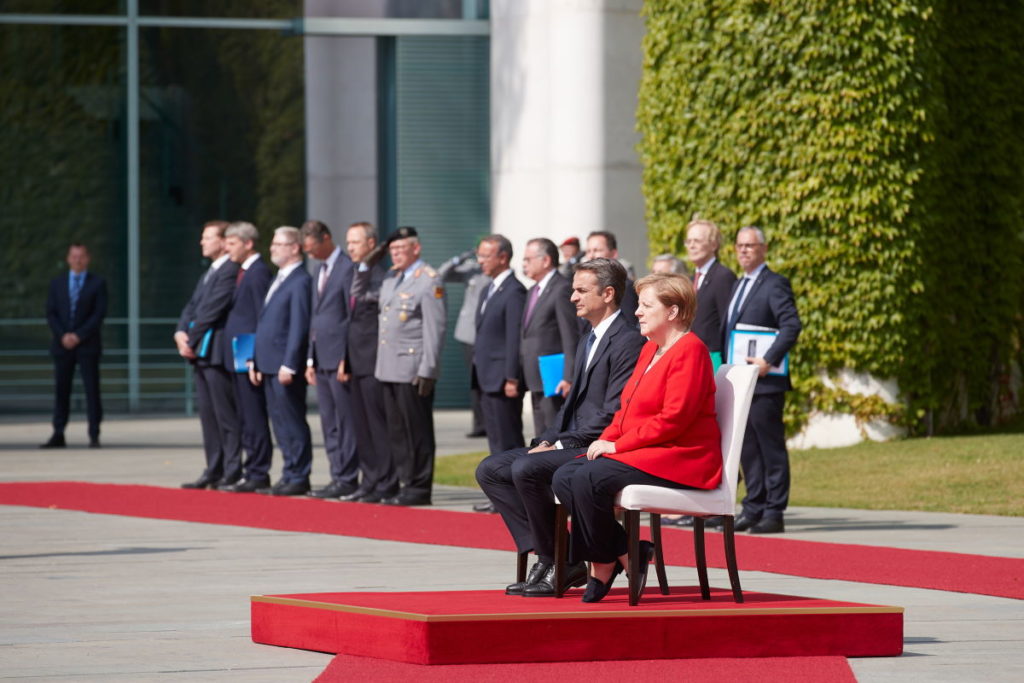 «Χαίρομαι που μου δίνεται η ευκαιρία να καλωσορίσω τον κ. Μητσοτάκη. Έχουμε συναντηθεί συχνά στο παρελθόν, αλλά τώρα με τη νέα ιδιότητά του», δήλωσε μετά τη συνάντηση με τον Έλληνα πρωθυπουργό η καγκελάριος Άνγκελα Μέρκελ.