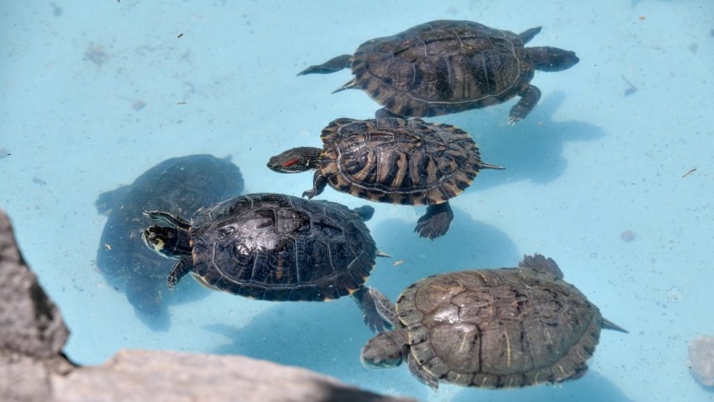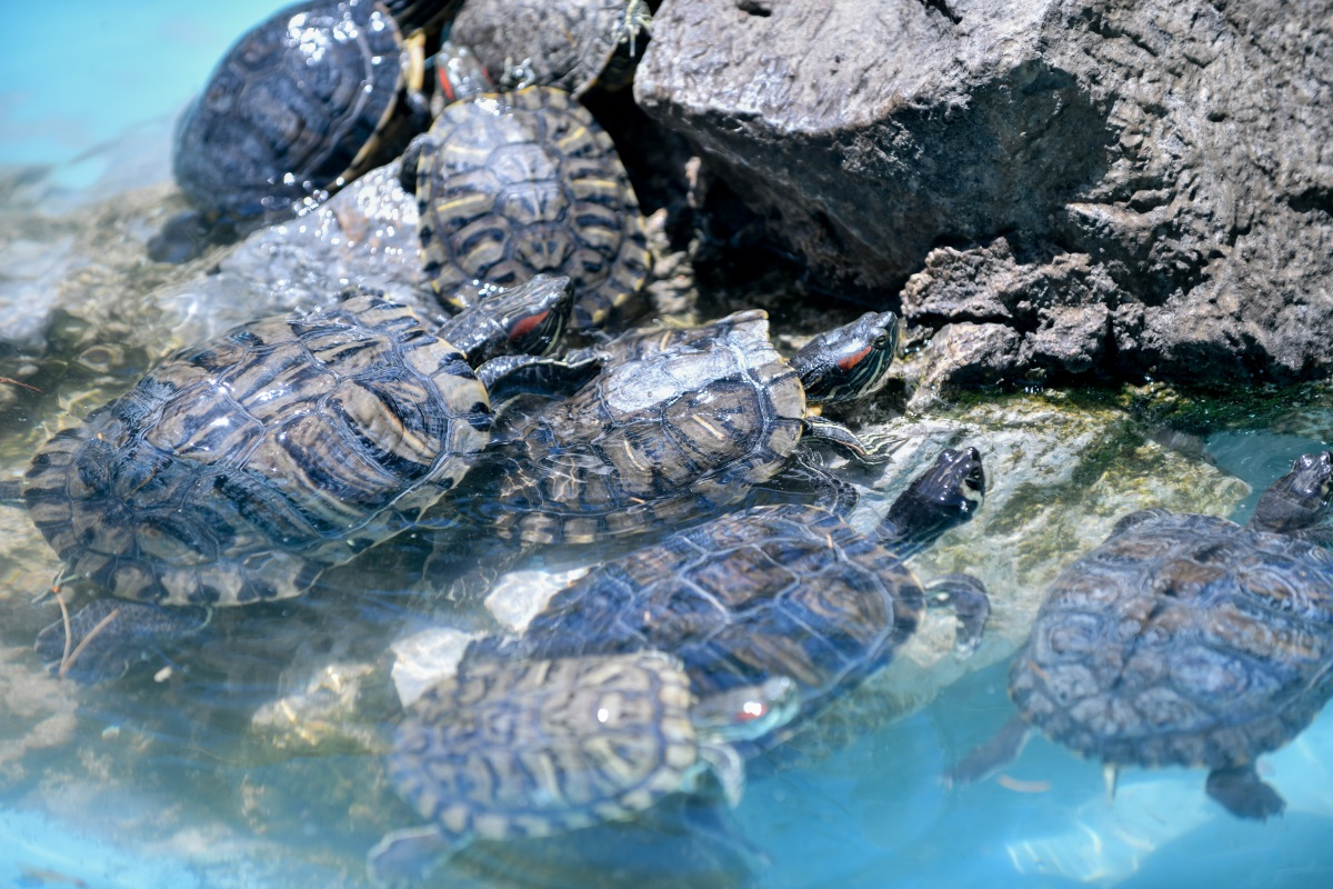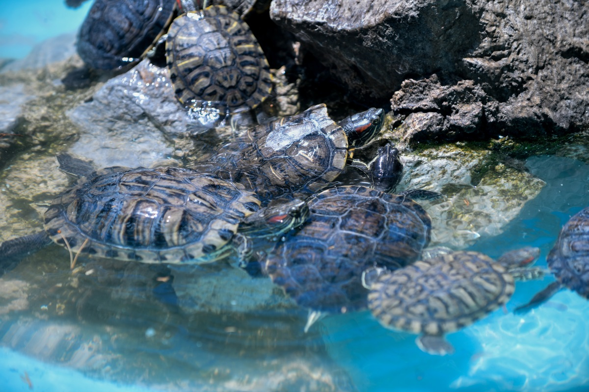 Ο φωτογραφικός φακός απαθανάτισε τις νεροχελώνες του Εθνικού Κήπου, οι οποίες «δροσίζονται» στη μικρή λίμνη.
