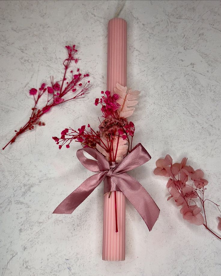 Για όσους αγαπούν το «less is more», οι λαμπάδες με ουδέτερα χρώματα, αποξηραμένα λουλούδια ή κομψά charms είναι η πιο chic επιλογή.