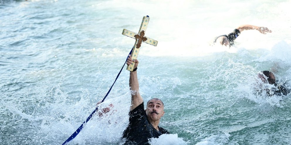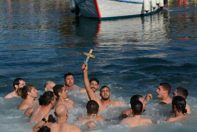 Ιδιαίτερη θέση στην παράδοση έχουν και οι βουτηχτές, εκείνοι που πέφτουν στα παγωμένα νερά για να πιάσουν τον Σταυρό. Για άλλους είναι τάμα, για άλλους τιμή και για άλλους μια πράξη πίστης και δύναμης. Όποιος τον πιάσει θεωρείται ότι θα έχει ευλογία και καλοτυχία όλη τη χρονιά, όμως ακόμη και η συμμετοχή στη διαδικασία έχει συμβολικό βάρος: είναι η ανθρώπινη προσπάθεια να φτάσει κανείς στο φως.