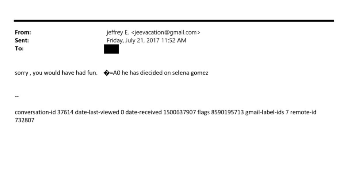 ε μία από αυτές τις αναφορές εμφανίζεται μήνυμα όπου γίνεται μνεία στο όνομα της τραγουδίστριας, γεγονός που αξιοποιήθηκε από συνωμοσιολογικούς κύκλους ως «απόδειξη» για σκοτεινά σενάρια.
