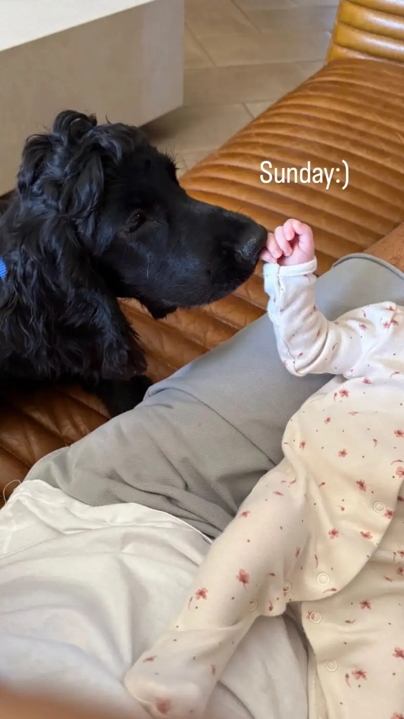 Το μεσημέρι της Κυριακής ο Ανδρέας Γεωργίου δημοσίευσε στα social media μια φωτογραφία στην οποία βλέπουμε την κορούλα του στον καναπέ, ενώ το σκυλάκι τους αγγίζει με τη μύτη του το χεράκι της.