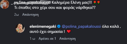 Η παρουσιάστρια απάντησε σε αρκετά από τα σχόλια που δέχτηκε, δείχνοντας πως η αμεσότητα και η επικοινωνία με τον κόσμο εξακολουθούν να αποτελούν βασικό κομμάτι της καθημερινότητάς της. Άλλωστε, τριάντα χρόνια συνεχούς παρουσίας στην τηλεόραση έχουν δημιουργήσει έναν δεσμό που δύσκολα σπάει, ακόμη και όταν τα φώτα του στούντιο σβήνουν.