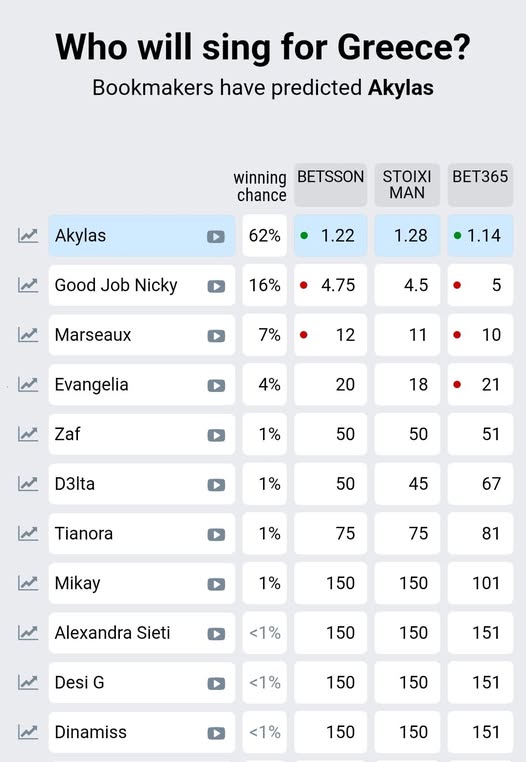 Επίσης, σταθερά εδώ και μέρες βρίσκεται και στα τρία πρώτα φαβορί για να κερδίσει και για τον διαγωνισμό της Eurovision, ο οποίος θα πραγματοποιηθεί τον Μάιο στην Βιέννη.