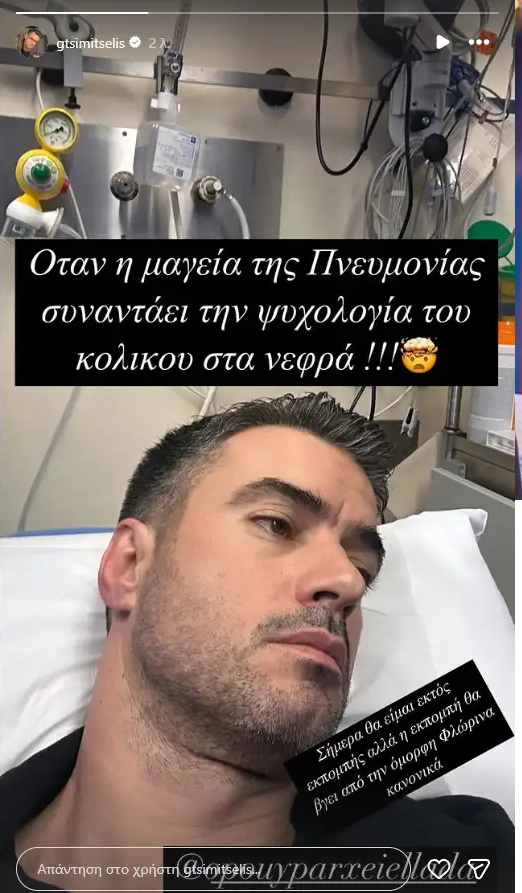 Ο Γιάννης Τσιμιτσέλης αποκάλυψε σήμερα 10/12 μέσα από το Instagram ότι χρειάστηκε να μεταφερθεί στο νοσοκομείο, ενημερώνοντας τους διαδικτυακούς του φίλους για την κατάσταση της υγείας του.