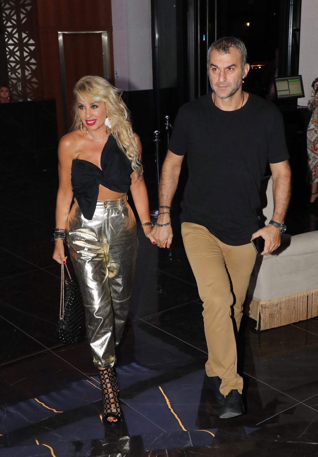 Η Γωγώ, απαστράπτουσα μέσα στο χρυσό παντελόνι της και ο Τραϊανός με casual look απόλαυσαν το πρόγραμμα.