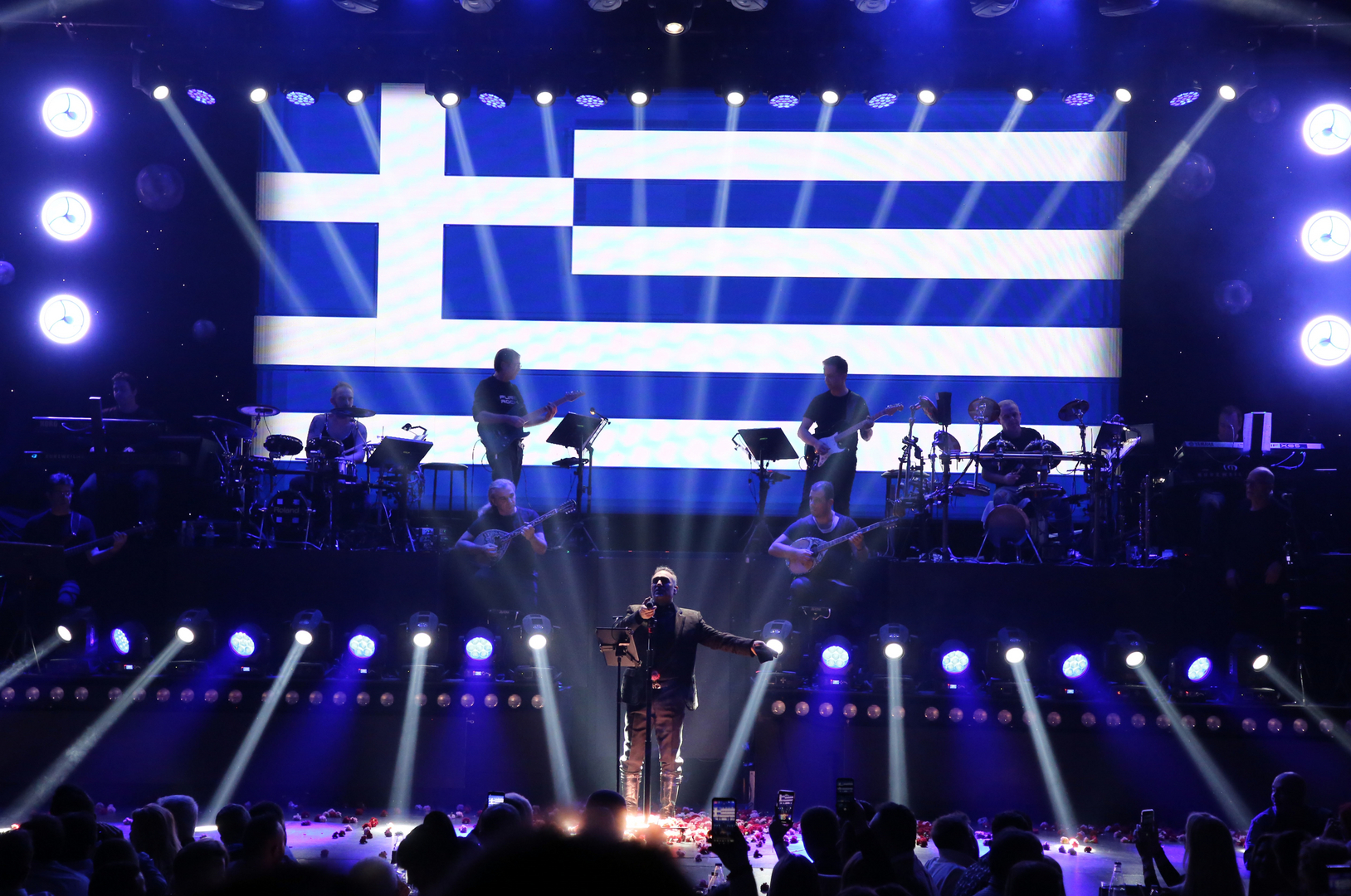 - Ο Νότης Σφακιανάκης με φόντο την ελληνική σημαία