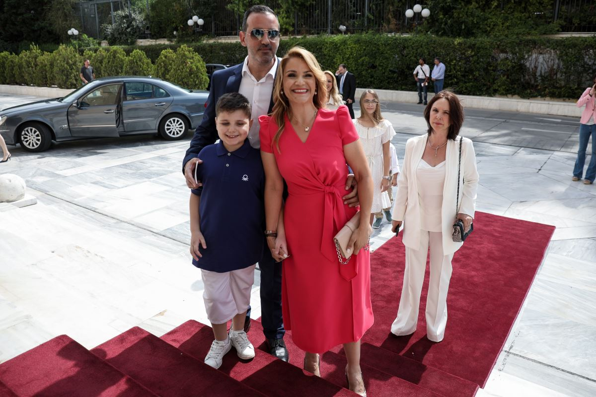 Είδαμε και την κυρία Ζαχαρέα, στο πλευρό του Θόδωρου Ρουσόπουλου (κάπως χειμωνιάτικα ντυμένη) αλλά και η Ευγενία Μανωλίδου που ήταν πιο κομψή αυτή τη φορά σε σχέση με την ορκωμοσία της κυβέρνησης.