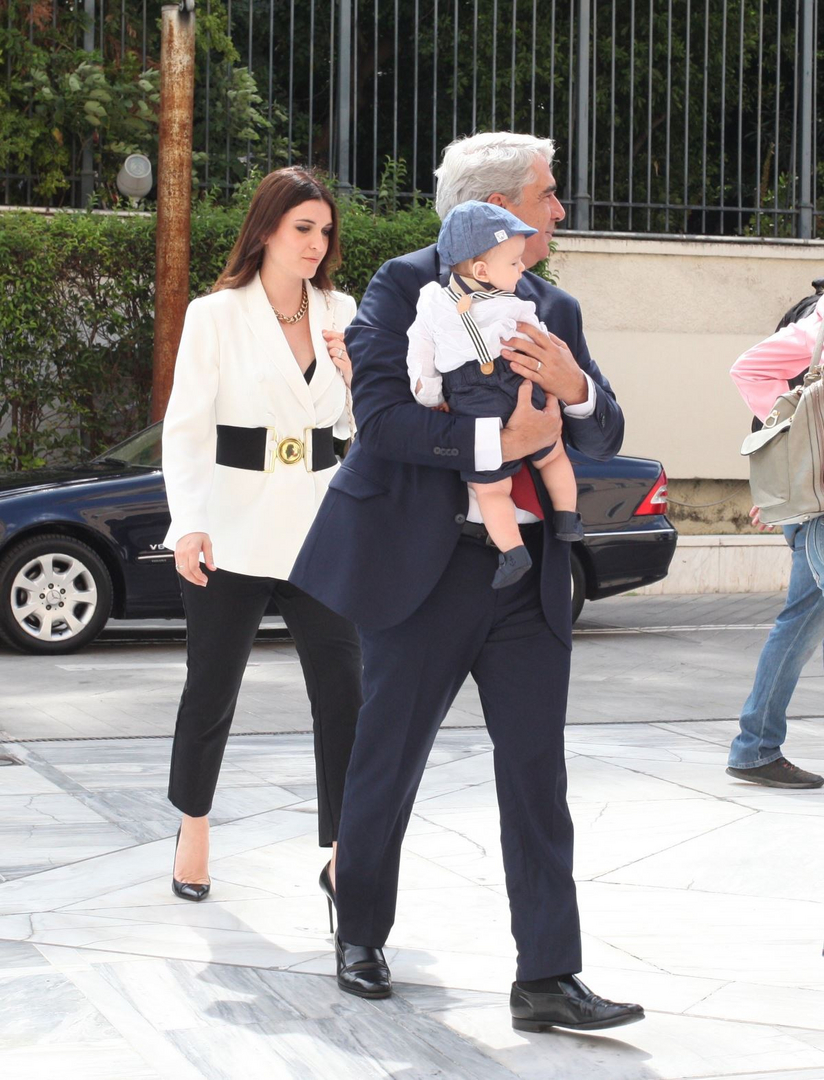 - Ο Σίμος Κεδίκογλου προσήλθε στη Βουλή με τον λίγων μηνών γιο του και τη σύζυγό του, Ελισάβετ Κατσαμάκη