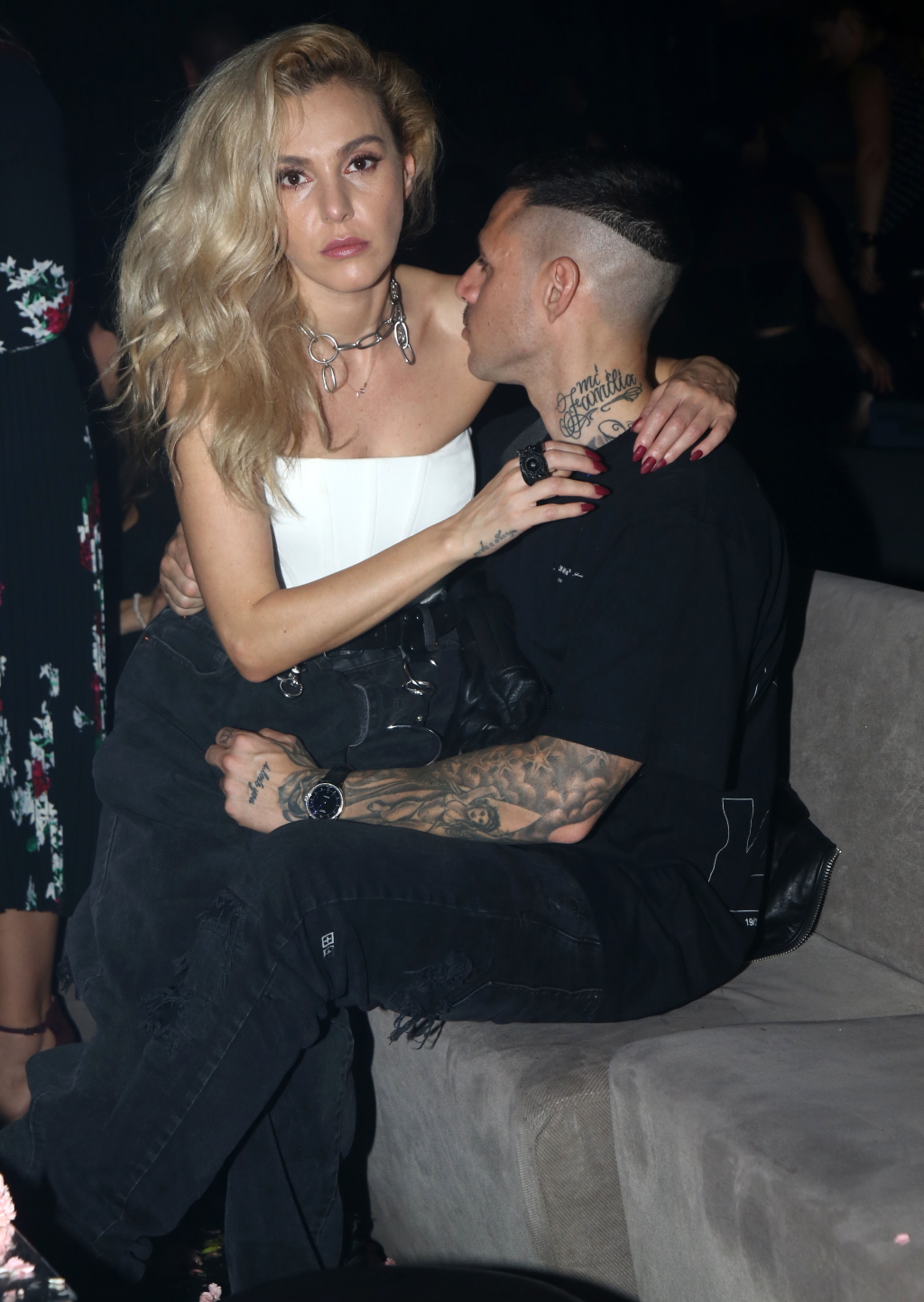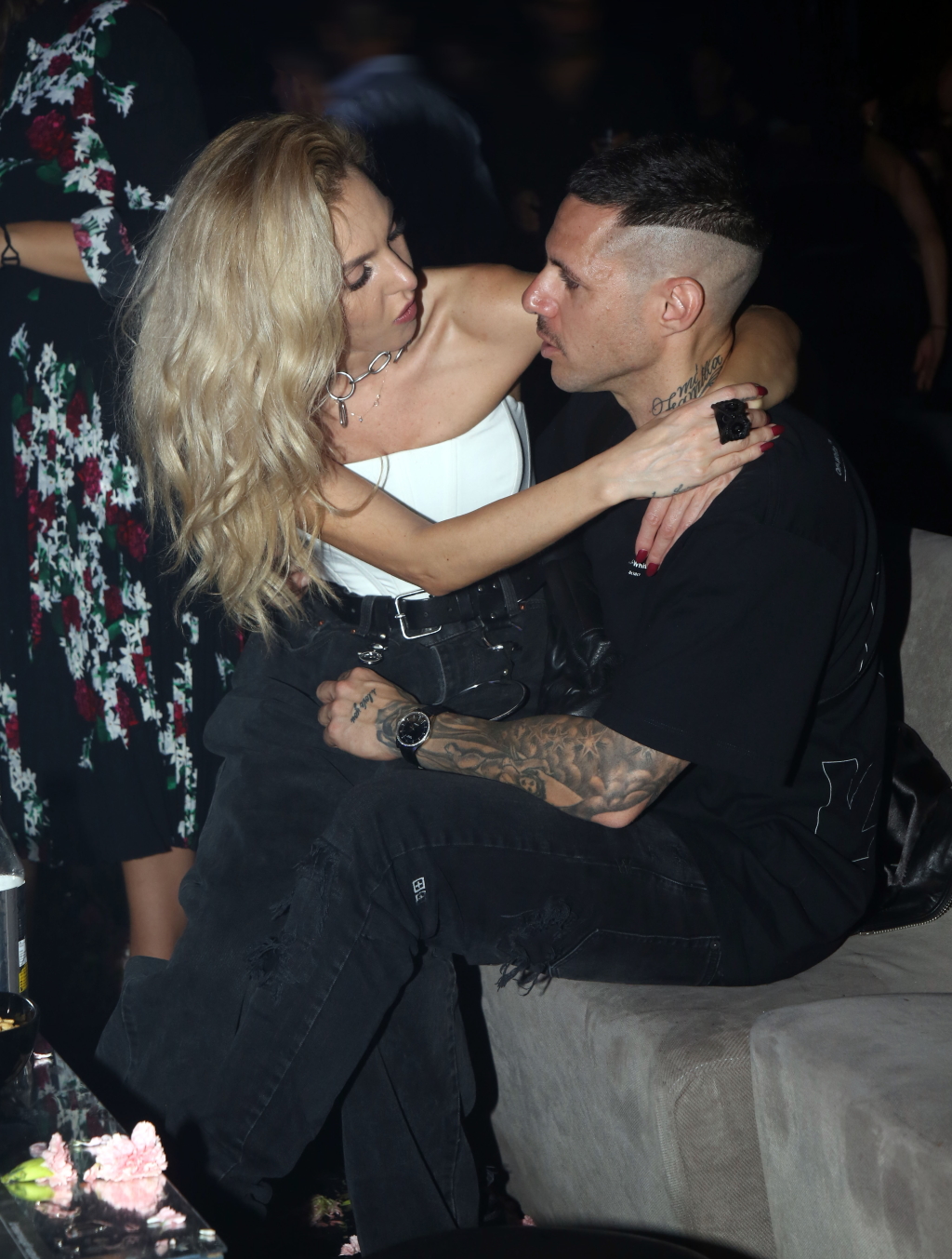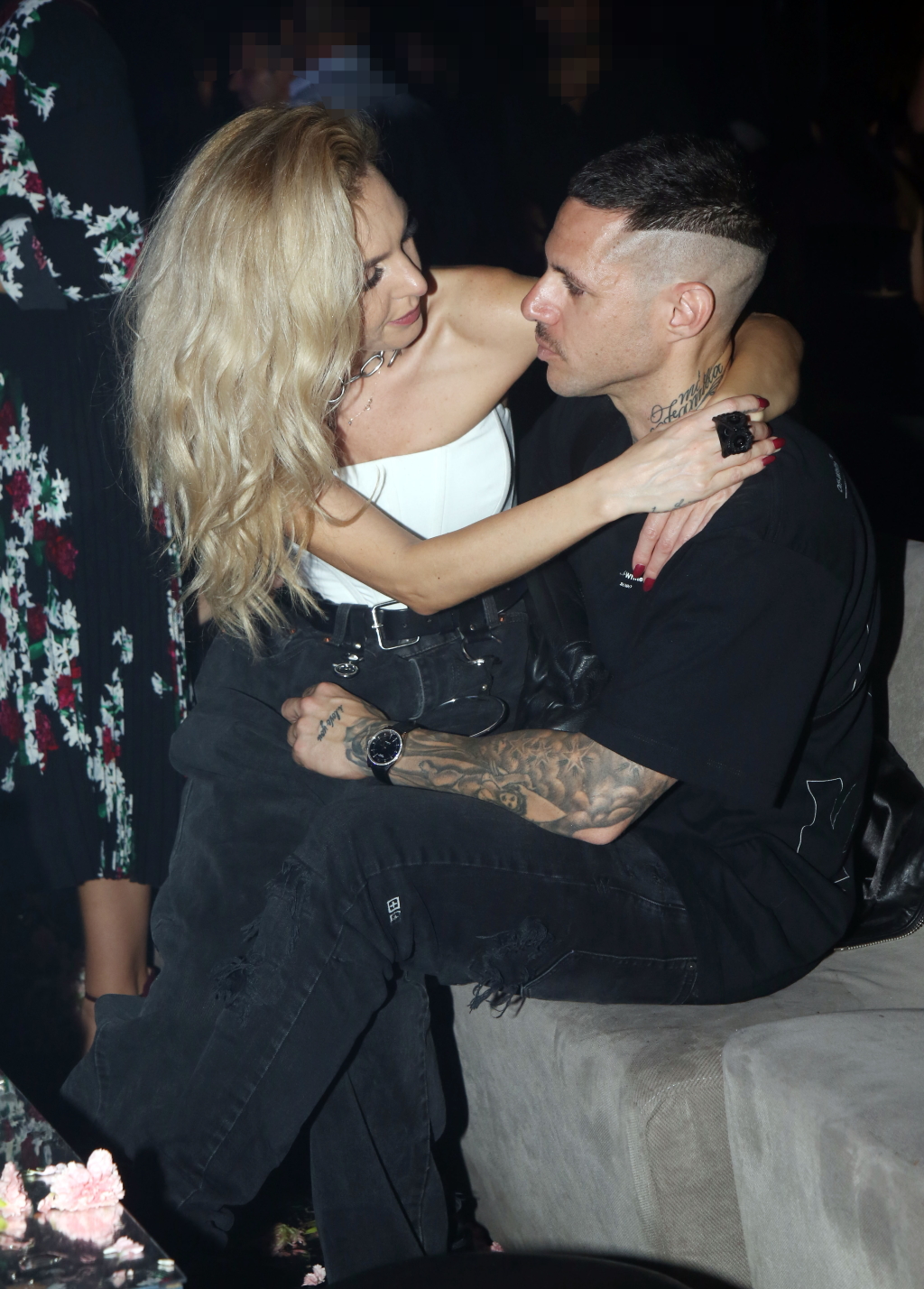 Το ζευγάρι που είναι μαζί εδώ και περίπου 4 χρόνια ήταν ιδιαίτερα διαχυτικό με την Τάμτα να κάθεται στα πόδια του συντρόφου τους.