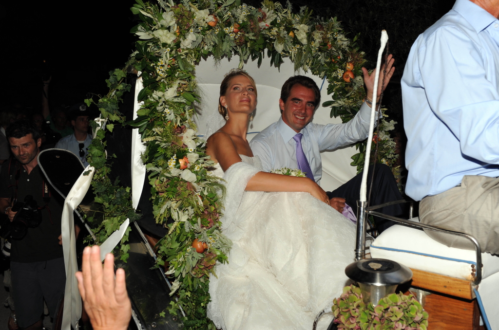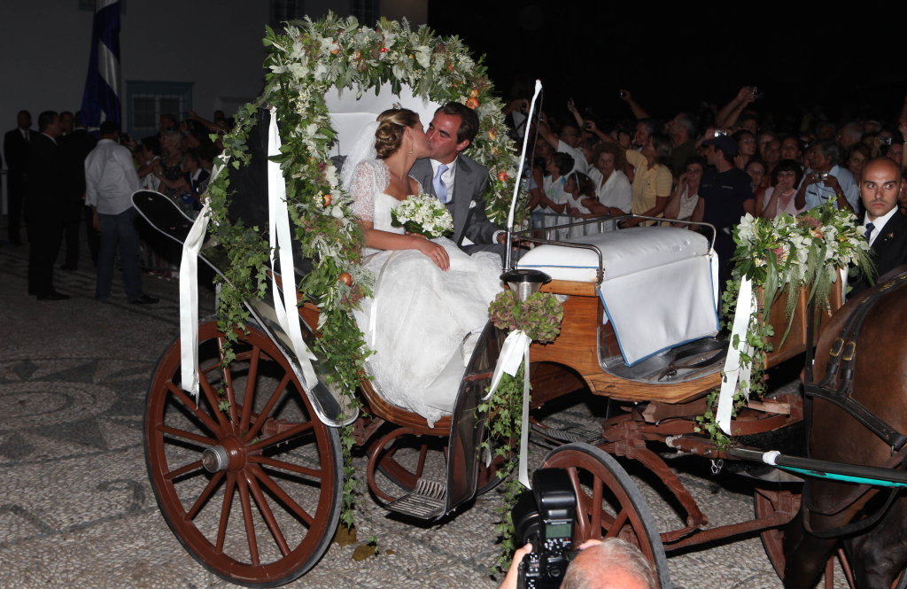 Ο γάμος τους είχε τελεστεί στη Μονή του Αγίου Νικολάου στις Σπέτσες, όπου ο γαμπρός είχε φτάσει από το Πόρτο Χέλι (όπου βρίσκεται η κατοικία του τέως βασιλιά Κωνσταντίνου) με το σκάφος του.