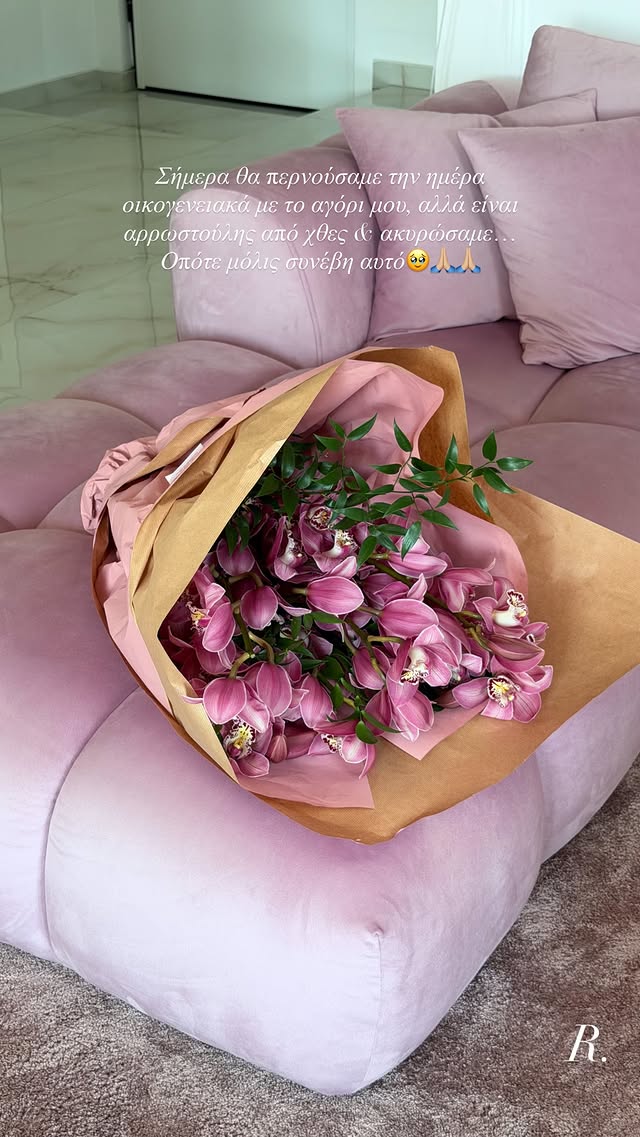 Παρότι η απουσία του συντρόφου της ήταν δεδομένη, εκείνος φρόντισε να της δείξει με έναν διαφορετικό τρόπο ότι την σκέφτεται. Μια εντυπωσιακή ροζ ανθοδέσμη έφτασε στα χέρια της, λειτουργώντας σαν ένα γλυκό «συγγνώμη» για την ανατροπή των σχεδίων.