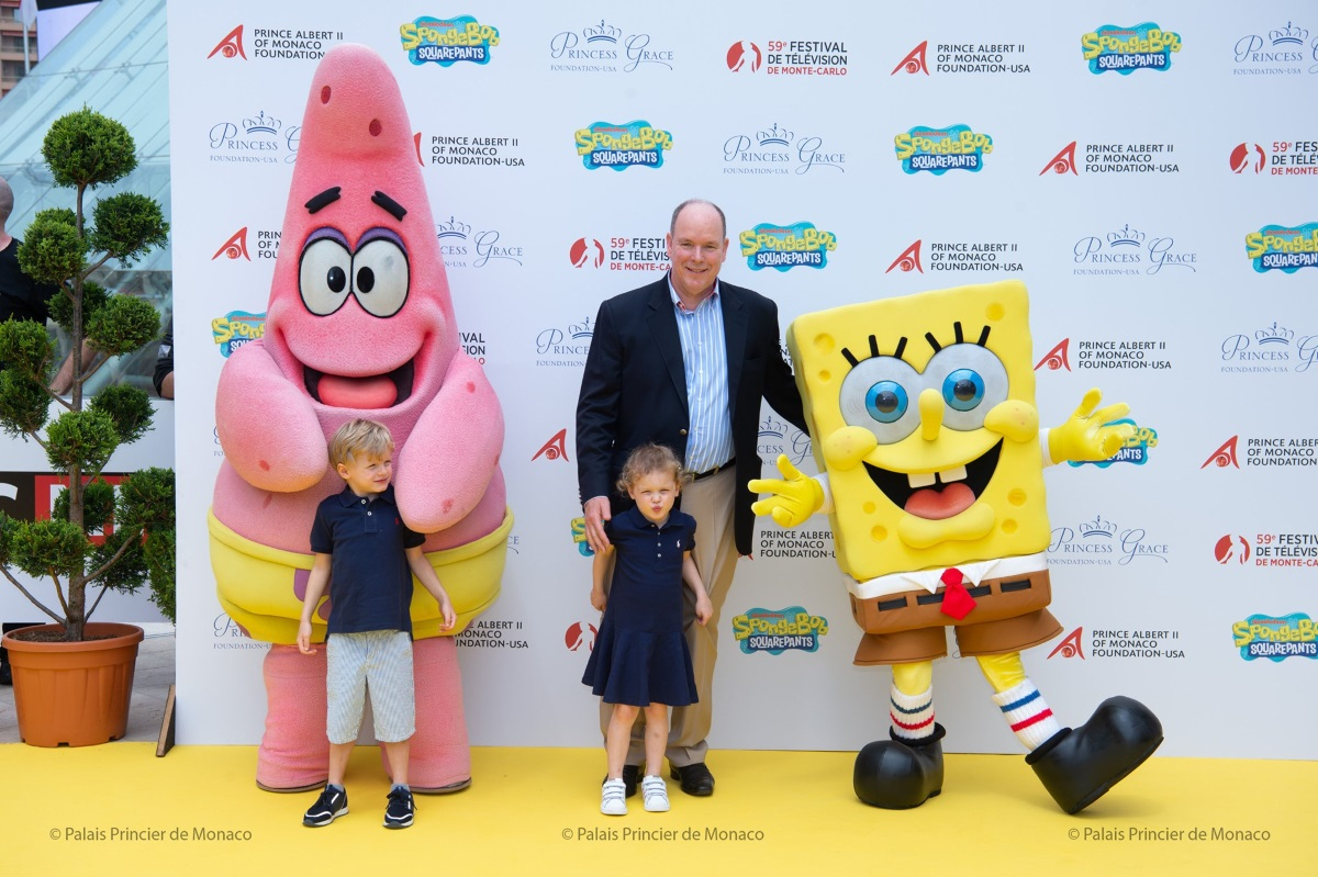 - Ο Πρίγκιπας Αλβέρτος, τα δίδυμα παιδιά του, Gabriella Thérèse Marie και Jacques Honoré Rainier, και ο Μπομπ Σφουγγαράκης