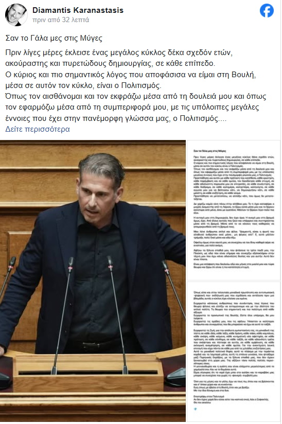 Θα τον ακούσω», έγραψε χαρακτηριστικά στην ανάρτησή του στο Facebook.