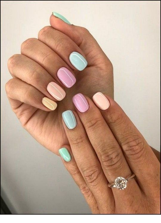 - Multicolor nails: Διαφορετικό χρώμα σε κάθε νύχι ή συνδυασμοί παστέλ αποχρώσεων. Αυτό το μανικιούρ είναι χαρούμενο, νεανικό και εκφράζει την επικοινωνιακή σου φύση.